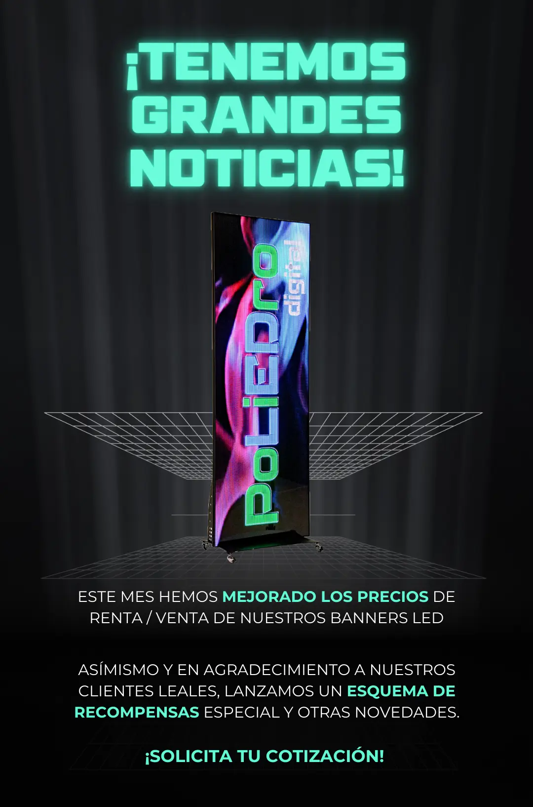 Con más de 10 años de experiencia, nos especializamos en la renta y venta de Pósters de LED para publicidad.